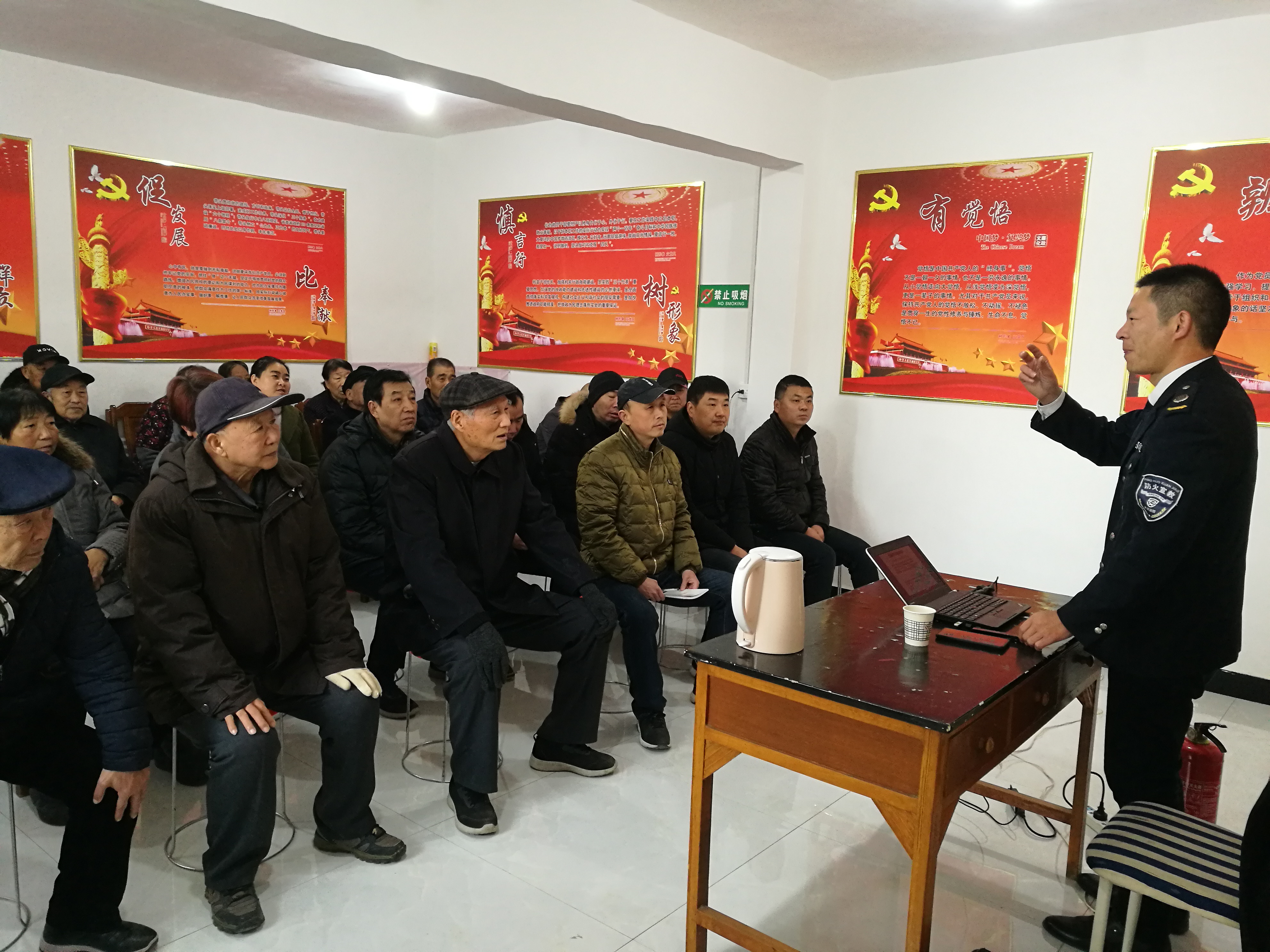 ? ? 講座中,授課教官結合近期的火災案例,運用圖片和影像資料,通過一個個真實的案例,對在場人員進行了消防安全宣傳教育,并詳細講解了發生火災后如何逃生、如何自救、如何撲救初期火災,重點介紹了家庭日常用火與用電方面的安全知識,并現場對職工家屬提出的問題進行解答。