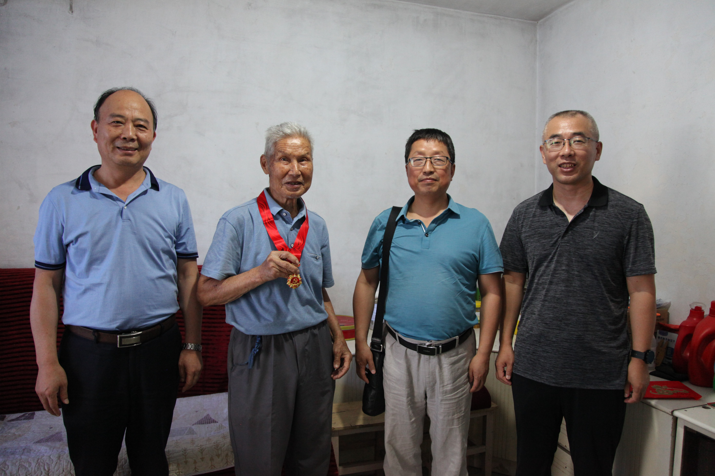 ? ? 6月23日,陜西地礦集團(tuán)有限公司總工程師王根寶,在總工辦主任李方周同志、物化探隊(duì)黨委書記李新勝同志的陪同下,前往物化探隊(duì)離休老黨員家中,看望慰問67年黨齡、87歲高齡的許俊賢同志,并為他頒發(fā)“光榮在黨50年”紀(jì)念章,王根寶同志對(duì)他兢兢業(yè)業(yè)為黨工作、為人民服務(wù)付出心血和汗水致以深深的敬意,并親切囑托他保重身體、安享晚年。許俊賢同志難掩激動(dòng)之情,感到無(wú)比光榮和自豪,還感謝黨中央對(duì)老黨員的尊重、關(guān)心、愛護(hù),并堅(jiān)定表示聽黨話、感黨恩、跟黨走。