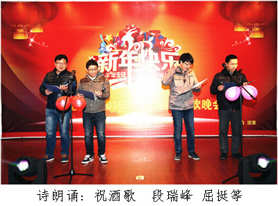 ? ? 伴隨著炫動(dòng)的燈光,激情的音樂,歌曲《歡聚一堂》拉開了晚會(huì)的序幕,也拉開了歡樂和友誼的序曲。大家在這里歡聚一堂,聚一份祝福,聚一份吉祥,聚一份興旺,滿懷激情、滿懷喜悅共同祝愿物化探事業(yè)蒸蒸日上。一曲抒情的《朋友》唱出了互相關(guān)心、互相愛護(hù)、團(tuán)結(jié)友愛,大家用心感受這份真情,用愛融化冰雪,用真誠(chéng)點(diǎn)亮希望。雄壯有力的男聲大合唱《團(tuán)結(jié)就是力量》,表達(dá)了物化探人凝聚力量、團(tuán)結(jié)奮進(jìn)、求真務(wù)實(shí)的精神風(fēng)貌。具有濃郁民族特色的舞蹈《格桑花開》將晚會(huì)推向高潮。由職工創(chuàng)作的小品《地礦達(dá)人秀》,表現(xiàn)了物化探人熱愛生活,并以其風(fēng)趣幽默,新穎獨(dú)特的設(shè)計(jì)引起了觀眾的極大興趣,博得了職工的陣陣掌聲。由職工創(chuàng)作的配樂詩朗誦《物探者之歌》,謳歌了物探人“三光榮”和“四特別”精神,盡管被山風(fēng)吹裂了臉頰,驕陽炙燙了皮膚、嚴(yán)寒凍傷了手腳,無論如何也熄滅不了他們?yōu)榱说刭|(zhì)事業(yè)迎難而上、砥礪奮進(jìn)、無私奉獻(xiàn)的滿腔熱血。充滿青春活力的舞蹈《小蘋果》,將演出再次推向高潮。晚會(huì)在全體演職人員《難忘今宵》的大合唱歌聲中落下帷幕。