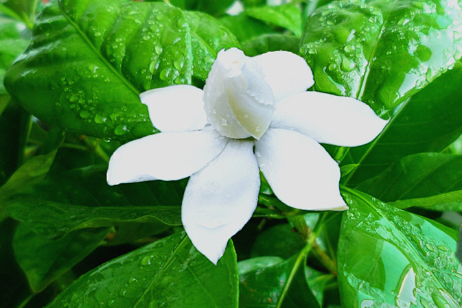 ? ? 哦,陽臺上的梔子花開了,花瓣潔白,芳香四溢,綠葉鮮脆,花萼重重,正對著我微笑。真好,梔子花開了——心里滿滿的柔柔的,一下子就蕩開了……