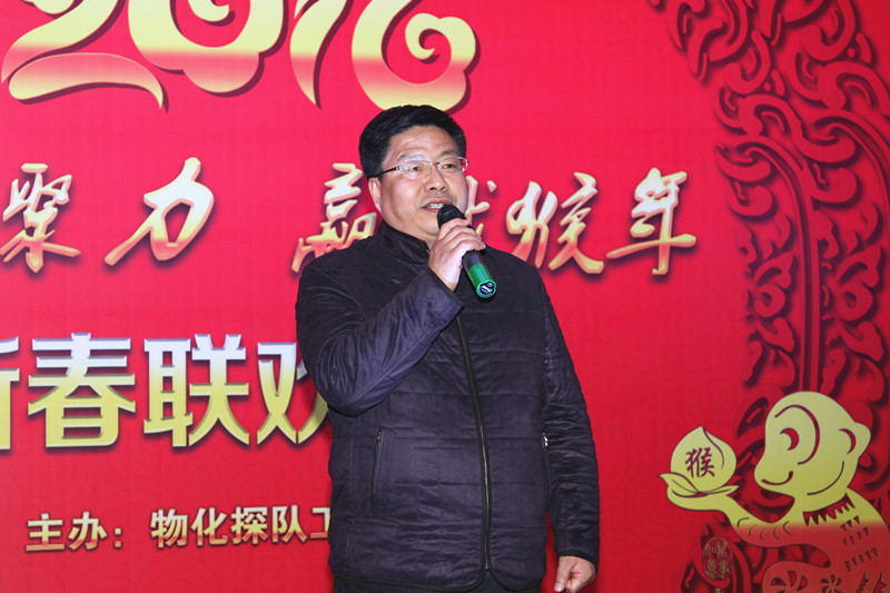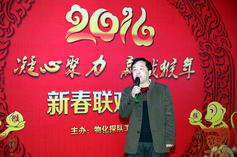 ??? 隊長王新坪致新春賀詞,他說:2015年在總公司的正確領(lǐng)導(dǎo)下,物化探隊創(chuàng)新發(fā)展,各項工作取得了顯著的成績。2016年按照總公司的新要求和物化探隊“大地質(zhì) 大物探 大發(fā)展”的經(jīng)營思路,凝心聚力,攻堅克難, 贏戰(zhàn)2106。全體干部職工一定要奮力搏擊,敢于擔(dān)當(dāng),攜手同心,用智慧和汗水共譜物化探隊新篇章!王新坪代表物化探隊領(lǐng)導(dǎo)班子,祝全隊職工在猴年來臨之際,身體健康,闔家幸福,生活美滿,事業(yè)有成。