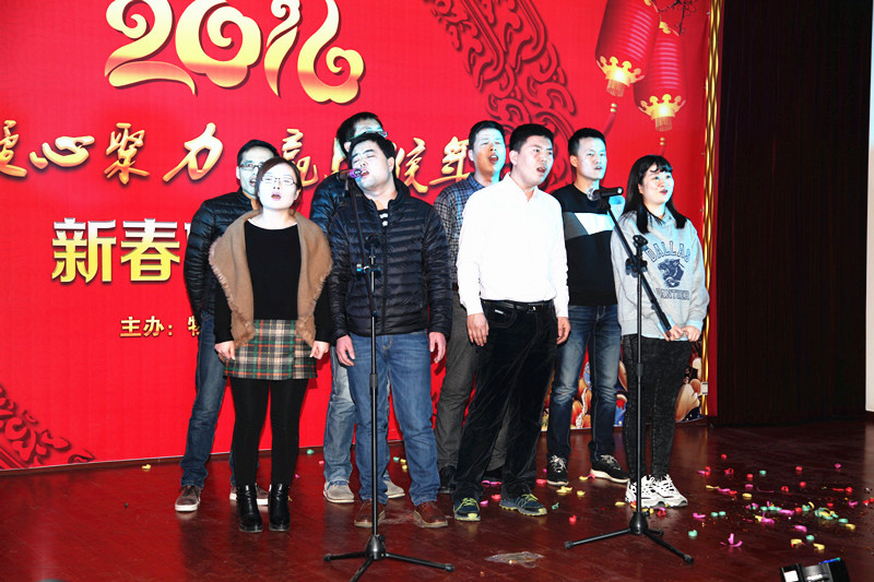 ??? 伴隨著炫動的燈光,激情的音樂,晚會在一支紅紅火火的“開門紅”舞蹈中拉開序幕,來自機(jī)關(guān)各科室的近十名青年職工,用熱辣動感的舞步瞬間沸騰了晚會現(xiàn)場,昭示著物化探隊天天開門紅,歡快的旋律、熱情的吶喊,讓晚會變成了一個“歡樂的海洋”,接下來的詩朗誦“新春頌”,表演熱情洋溢,共同祝愿物化探事業(yè)永遠(yuǎn)與春天同行!鏗鏘有力的合唱《勘探隊員之歌》,唱出了物化探隊職工為了地質(zhì)事業(yè)砥礪奮進(jìn)、無私的奉獻(xiàn)的崇高精神。女聲獨(dú)唱《謝謝你讓我這么愛你》溫情浪漫,別出心裁的《相信自己》亮出青春、堅定信心,相信2016我們一定能贏,把晚會推向高潮。白林科為晚會助興演唱了《男人哭吧不是罪》,激情的演唱博得了在場觀眾的陣陣掌聲。《父親的草原母親的河》表達(dá)了物化探人連續(xù)8年奮戰(zhàn)在內(nèi)蒙古巴丹吉林沙漠的深厚感情,他們真正是地質(zhì)一線的《真心英雄》,《我的好兄弟》唱出了物化探隊青年人的地質(zhì)情、戰(zhàn)友情,《北京頌歌》象征著團(tuán)結(jié)、凝聚著力量。《眾人劃槳開大船》表現(xiàn)了物化探人齊心合力、堅定信心、開拓創(chuàng)新,贏戰(zhàn)2016 ,走向希望,并將演出再次推向高潮,更是點(diǎn)燃了現(xiàn)場干部職工的熱情,激起了一浪高過一浪的喝彩與歡呼,也給廣大干部職工留下了一段難忘的歡樂時光。晚會結(jié)束后,白林科、王新坪、賀志銀為獲獎節(jié)目進(jìn)行了現(xiàn)場頒獎。