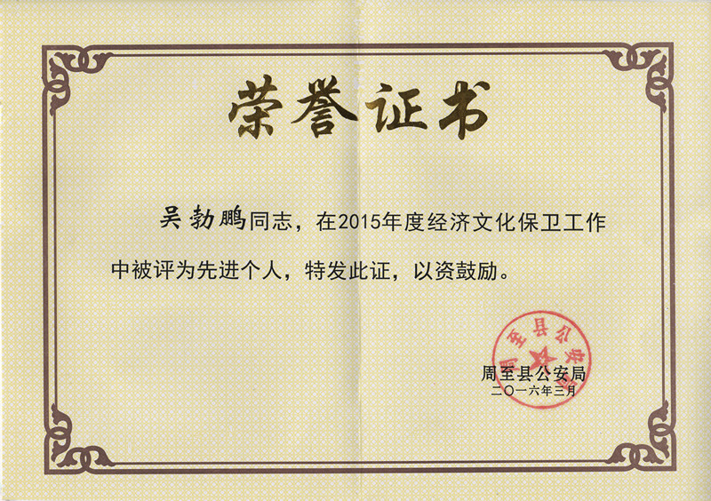 ? ? 物化探隊(duì)周至管理處,以周至縣積極開展創(chuàng)建“平安單位”活動(dòng)為契機(jī),以“保障單位安全,維護(hù)內(nèi)部穩(wěn)定,促進(jìn)社會(huì)和諧發(fā)展”為目標(biāo),持續(xù)推進(jìn)內(nèi)部治安防控體系建設(shè),為經(jīng)濟(jì)文化保衛(wèi)工作做出了貢獻(xiàn)。在3月23日周至縣公安局召開的《2015年度經(jīng)文保工作總結(jié)表彰暨2016年工作安排部署會(huì)議》上,吳勃鵬同志被周至縣公安局評(píng)為2015年度經(jīng)文保工作先進(jìn)個(gè)人。