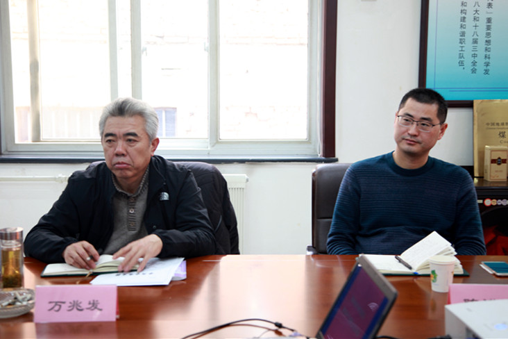 ? ? 1月16日,物化探隊召開2016年度領導班子民主生活會。地礦集團公司黨委委員、副總工程師萬兆發和地礦集團公司紀委委員、審計部主任陳諾余一行到會指導并作點評講話,物化探隊領導班子成員參加了會議。