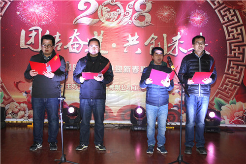 ? ? 隊黨委書記、執行董事、總經理王新坪發表了新年致辭,首先向全體職工及支持物化探隊發展的家屬、各界朋友致以新年的問候。他回顧了2017年物化探隊取得的成績,指出在2018年面臨的新挑戰,并勉勵全體職工圍繞“大地質、大物探、大服務”的發展戰略,不忘初心、牢記使命、勇往直前,全面貫徹“物化探+”發展理念,發揚“崇隊敬業、創新發展”為核心的企業文化,鍛造“真誠如歌天地遠,山高萬仞人為峰”的企業精神。